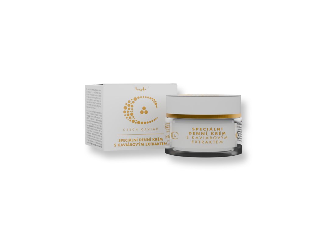 Bez denního krému si většina z nás nedokáže svůj život už představit. Luxusní Denní Krém s kaviárovým extraktem CZECH CAVIAR patří mezi ty, které nebudete již chtít vyměnit za žádný jiný. Jako jeho výrobci jsme mysleli na vše: aby se tento produkt dobře vstřebával, rozjasňoval pokožku, ale také abyste ho mohli používat jako bázi pod make-up. Tento hedvábný krém bílé barvy, je určen pro všechny typy pleti i věkové kategorie a určitě při jeho koupi neuděláte chybu. Je velmi oblíbený pro svoji charakteristickou vůni a také díky hedvábnému pocitu na pokožce ihned po jeho nanesení. Jeho složení je navrženo tak aby vyživoval pleť v hlubokých vrstvách pokožky. Obsahuje včetně našeho Kaviáru z českých jeseterů také avokádový a olivový olej, panthenol a další blahodárné látky.